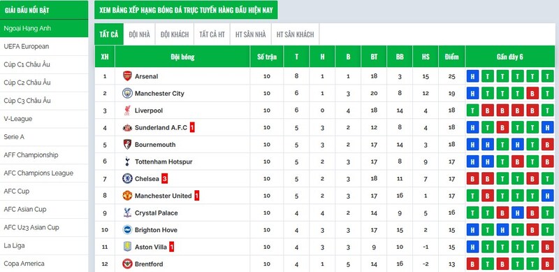 Bảng xếp hạng – Dữ liệu không thể thiếu khi đánh giá sức mạnh đội bóng
