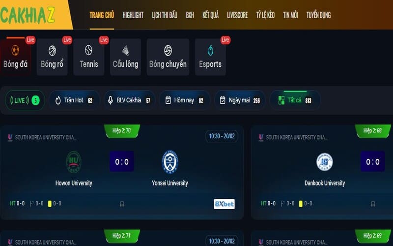 - V.League và đội tuyển Việt Nam: Đây là phần được ưu tiên đặc biệt. Các trận của HAGL, Hà Nội FC, TPHCM FC và đặc biệt là đội tuyển quốc gia luôn được đẩy lên đầu trang và có link ổn định nhất.