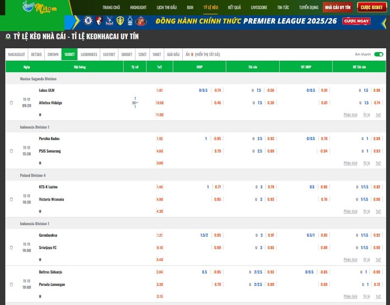 Điều đầu tiên khiến dân soi kèo “dán mắt” vào Mitom TV chính là khả năng cập nhật tỷ lệ kèo 88 theo thời gian thực. Trên bảng kèo của Mitom, mọi biến động dù nhỏ nhất đều hiển thị ngay lập tức: