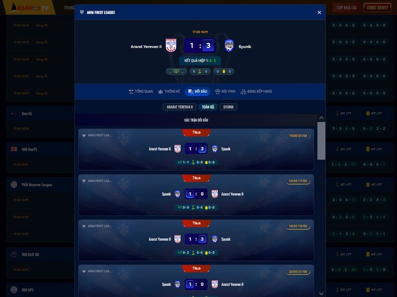 Kết quả gắn liền với highlight, lịch sử phong độ và đối đầu